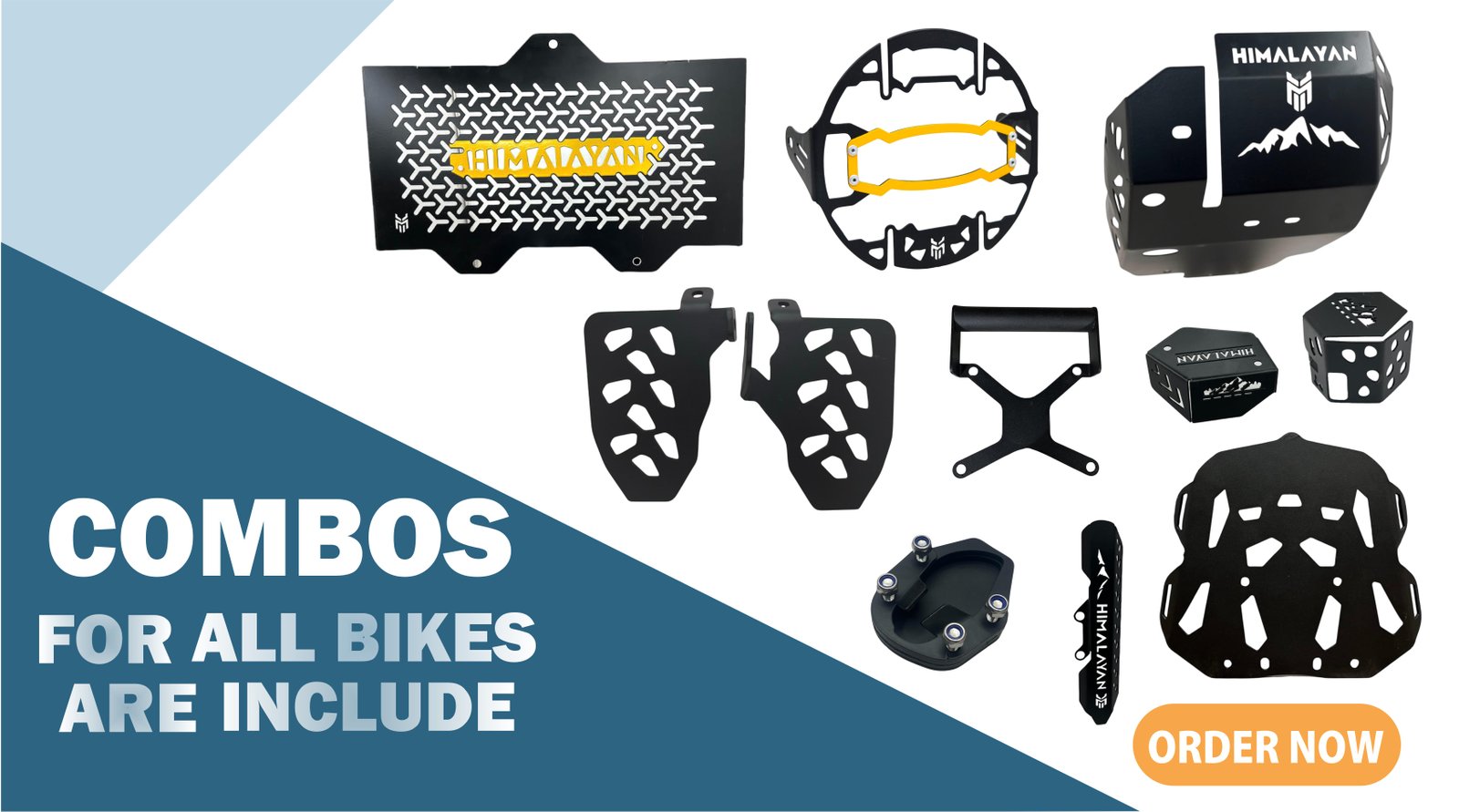 Royal Enfield Durable Himalayan 450 Motorcycle Protection Kit |Combo, Grey Batch Radiator Guard,Grey Batch Headlight Grill, Sump Guard, Top Rack, Footrest Steps, Black and Grey. ₹9799.00 ₹4399.00 Add to cart Buy Now