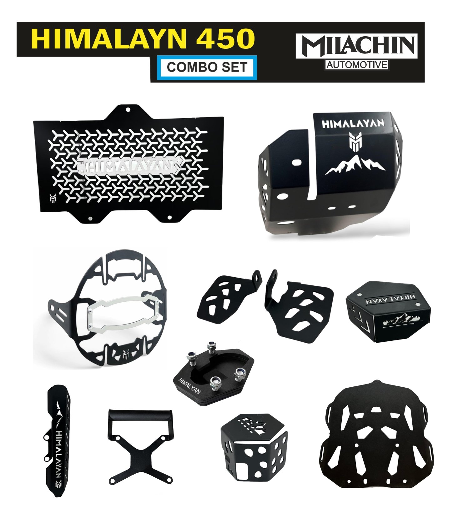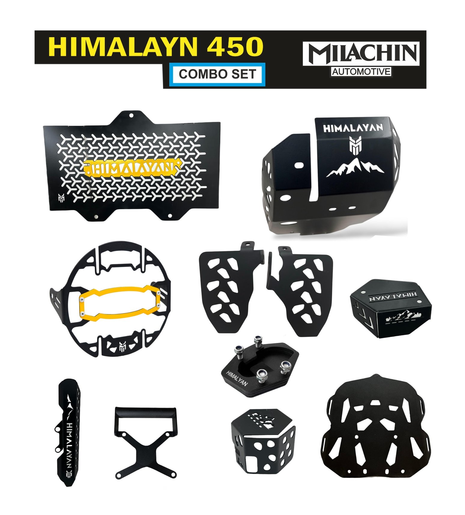 Royal Enfield Himalayan 450 Motorcycle Protection Combo | Kit Set, Big Size Footsteps ,Yellow Batch Radiator Guard, Yellow Batch Headlight Grill, with Yellow Accent Pack of 10. ₹9799.00 ₹4399.00 Add to cart Buy Now