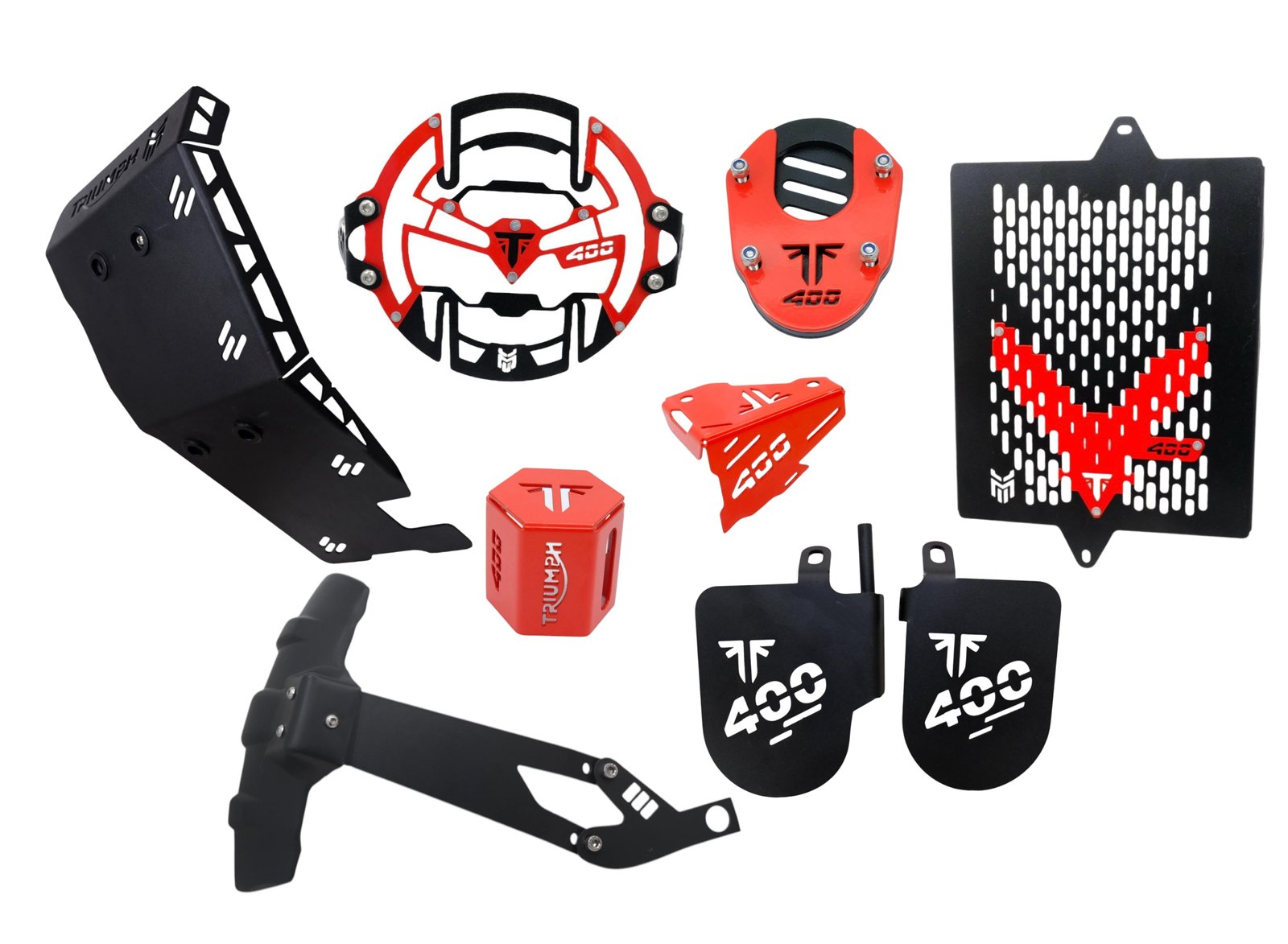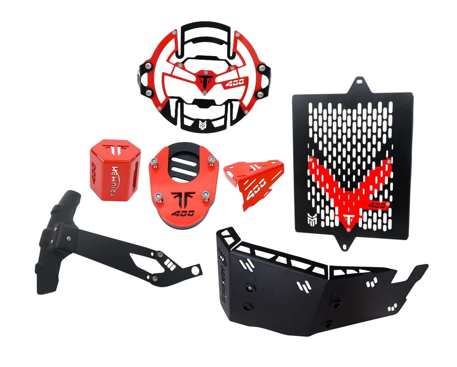 Motorcycle Protection Kit durable for Triumph Speed 400,Headlight Grill, Radiator Guard, Side Stand Extender Oil Caps Combo Red and Black ₹2999.00 ₹1499.00 Add to cart Buy Now