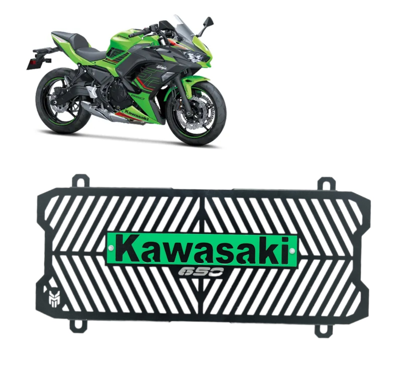 Kawasaki Ninja 650 Radiator Guard Protector Grill Black Metal Chevron Pattern, Motorcycle Cooling System Protection.